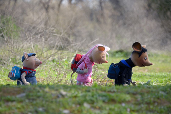 معلم: «بنشینید بچه موش‌های عزیز!» معلم بچه موش‌ها اعصای آهنینی داشت و به بچه‌ها با حوصله زیاد چیز یاد می‌داد. به جای معلم ناصر غفرانی حرف می‌زد.